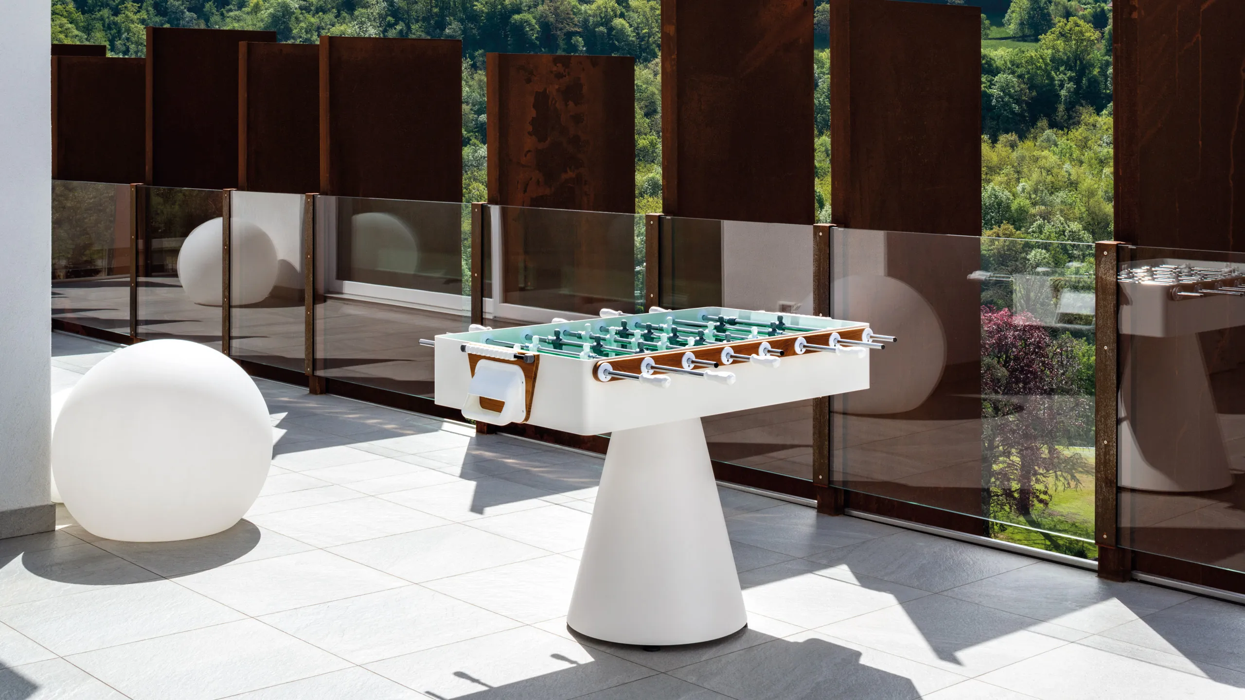 Ciclope ha una forma unica nel suo genere: sono state abbandonate le caratteristiche “gambe da tavolo” e adottata questa base conica, capace di dare stabilità ed eleganza al prodotto. I materiali utilizzati sono tutti resistenti agli agenti atmosferici, rendendolo adatto all’utilizzo sia per interni che esterni.