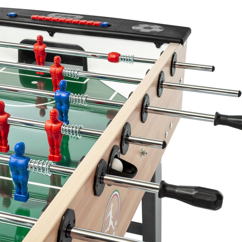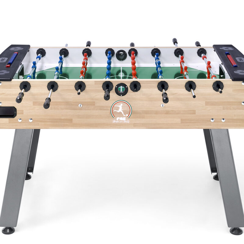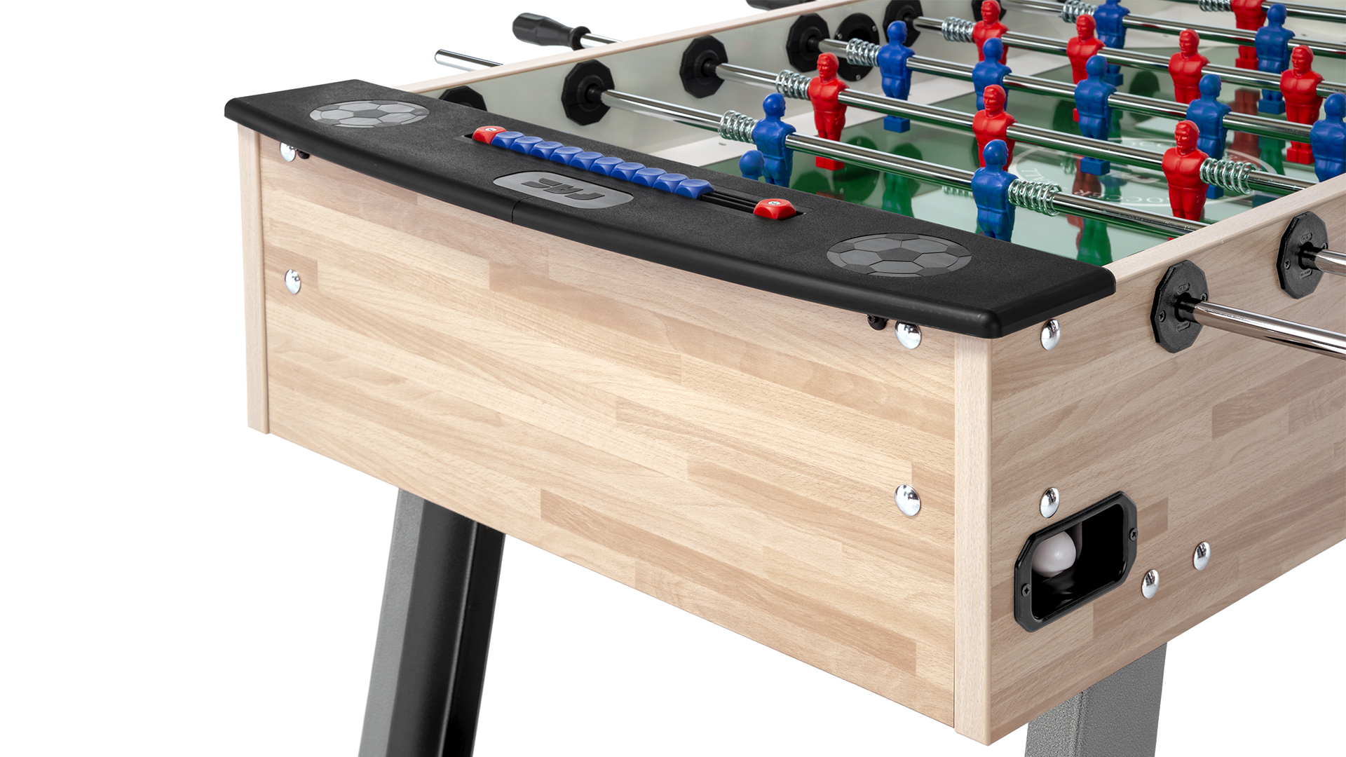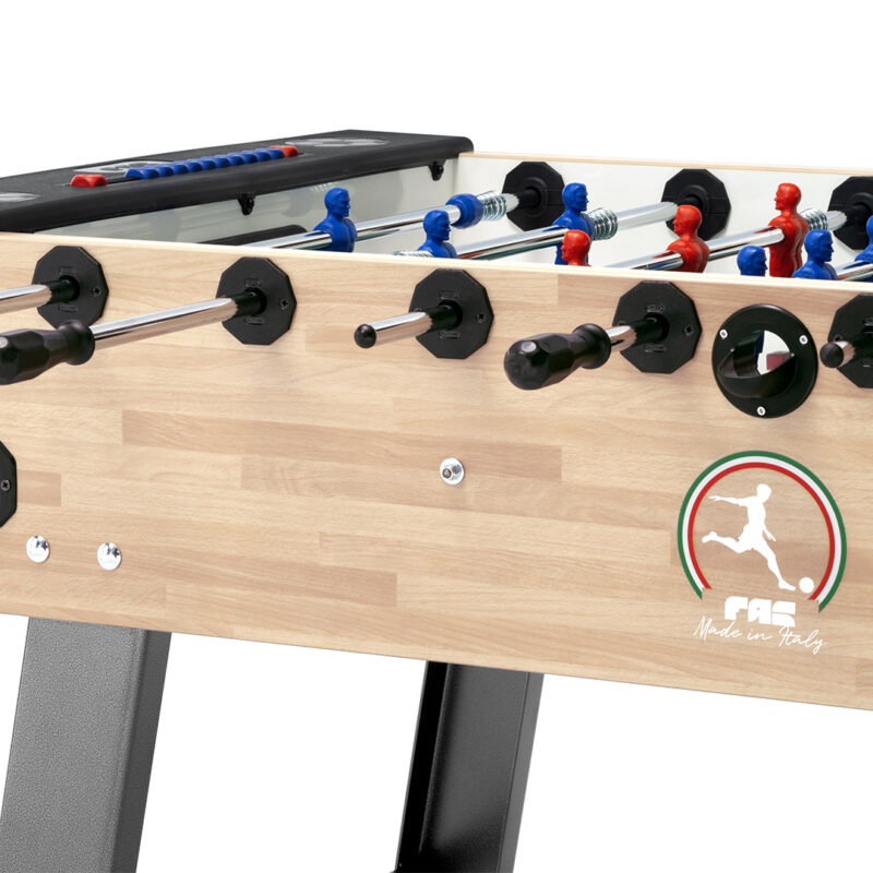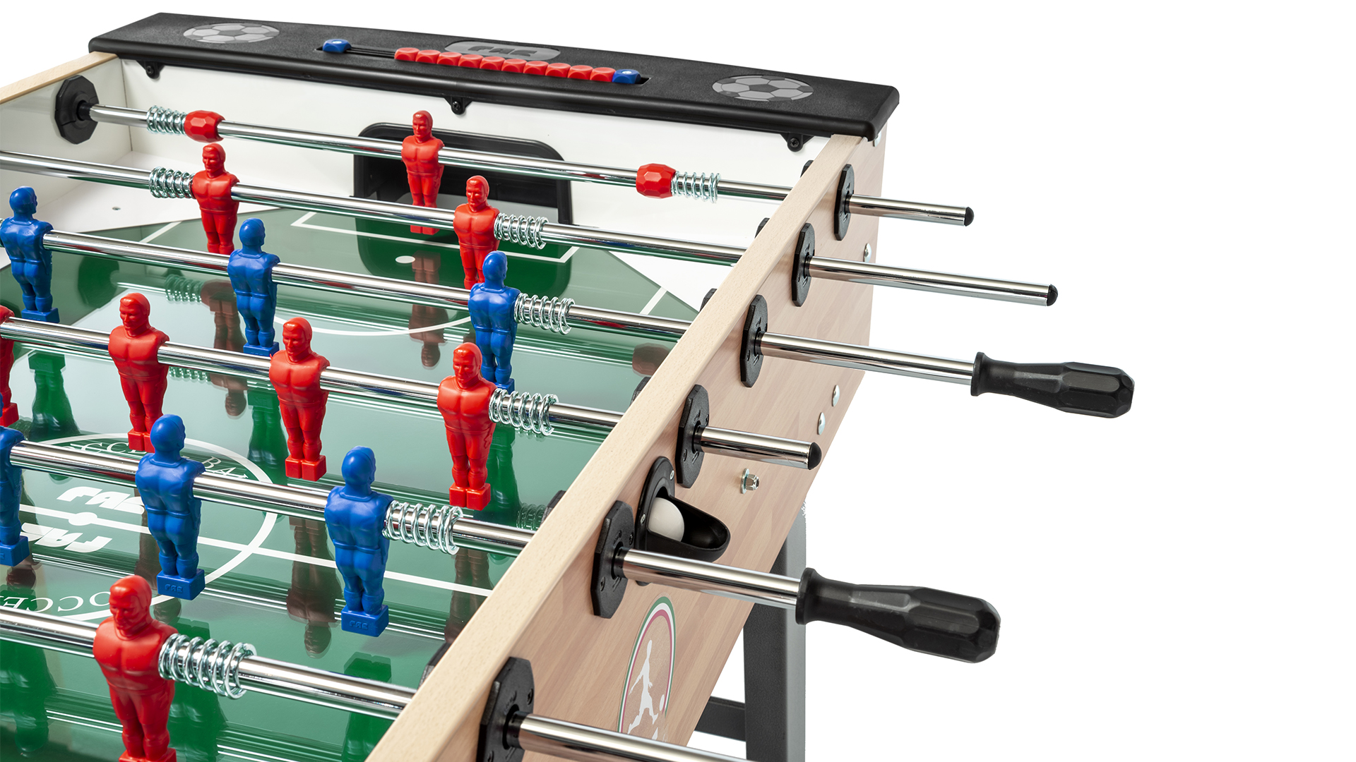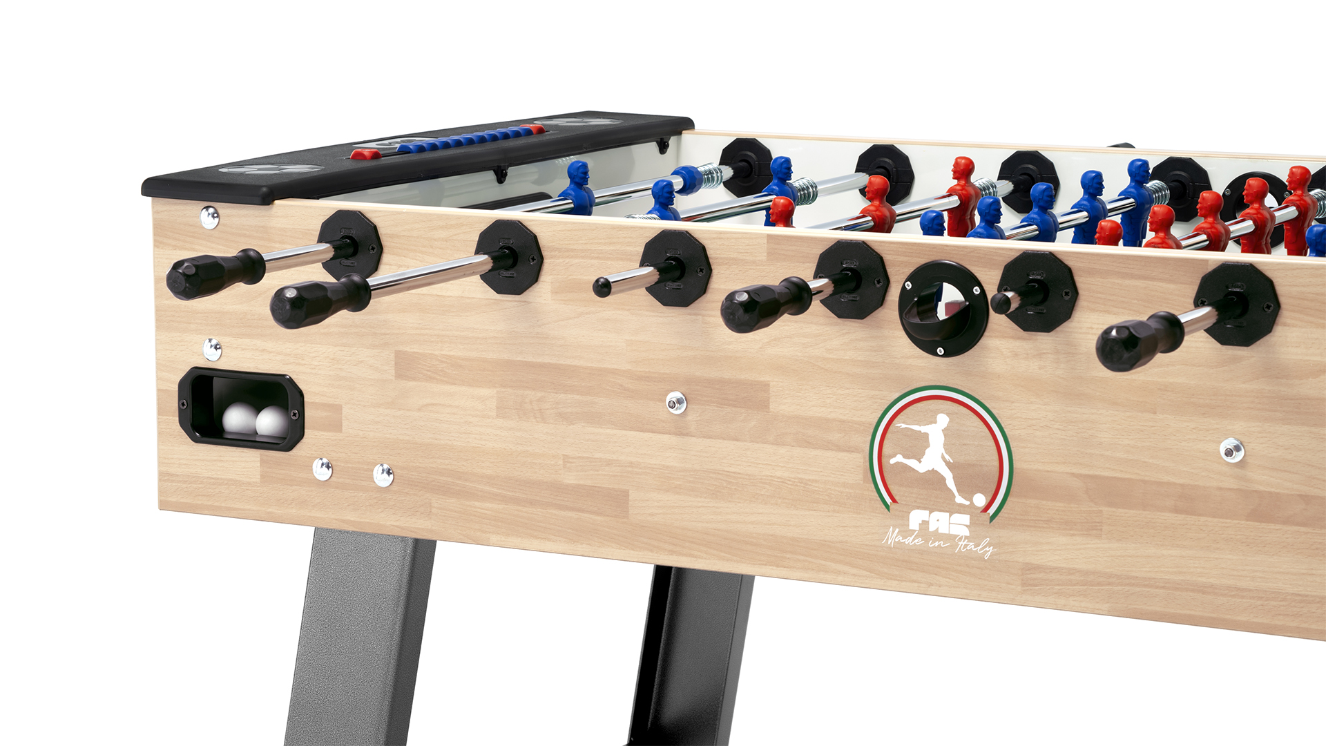Robustissimo calciobalilla da interno dotato di molte peculiarità tra cui un comodo bocchettone di introduzione pallina e piedini regolabili, il CLUB presenta molte caratteristiche generalmente richieste sui mercati esteri e che FAS non ha esitato ad adattare al mercato italiano.