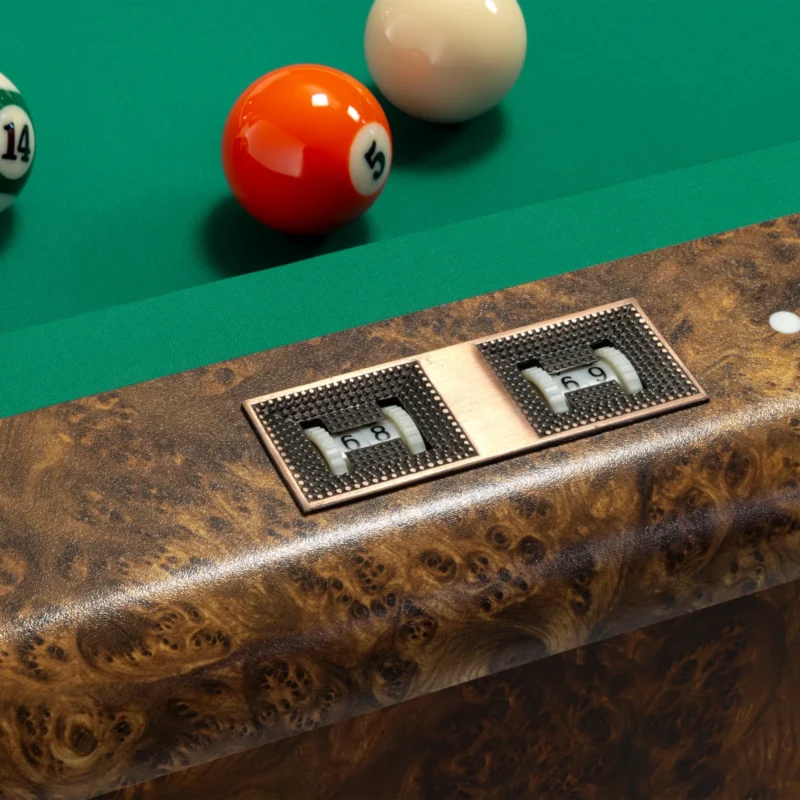 Accessori inclusi – 4 stecche; portastecche; set bilie numerate Ø 57; scatola gesso; triangolo per bilie; spazzola