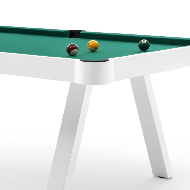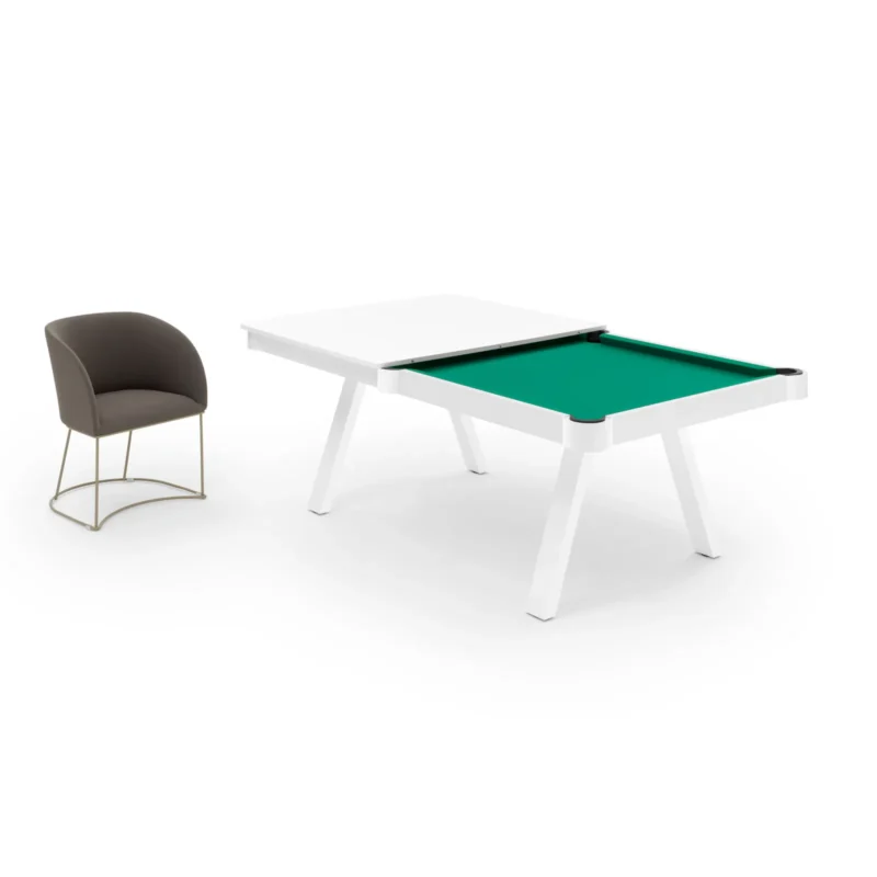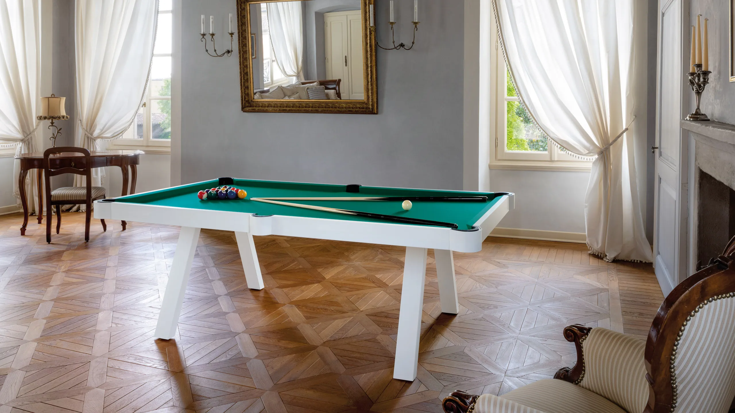 Forme innovative per un vero classico: il tavolo da biliardo Étoile è disegnato per stare sulle punte, come una prima ballerina. Gambe sottili e buche arrotondate, a formare un manufatto artistico non solo elegante ma anche funzionale. Disponibile con un doppio top, che va a coprire il campo da gioco quando non viene utilizzato, Étoile porta la giusta dose di innovazione ad un prodotto professionale.