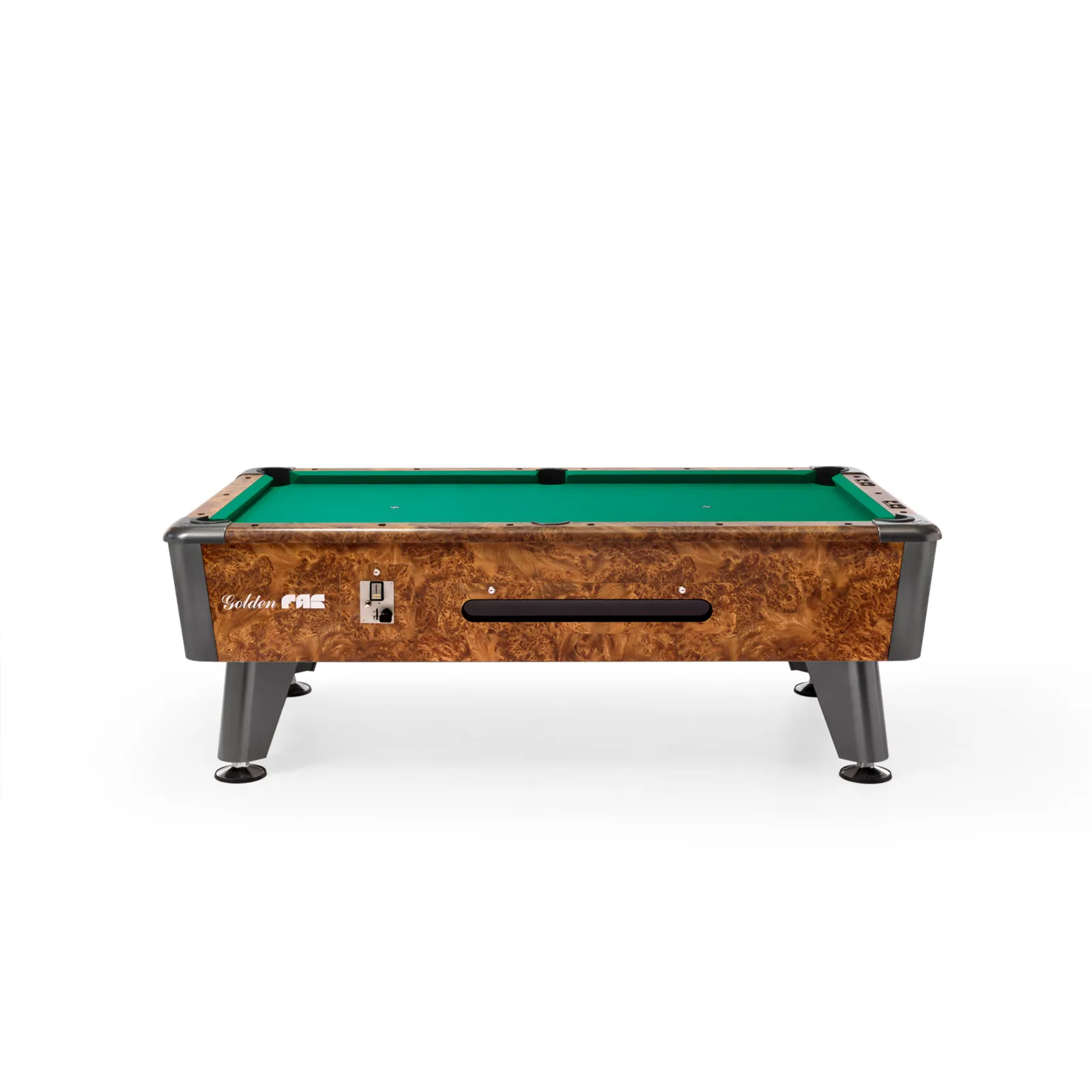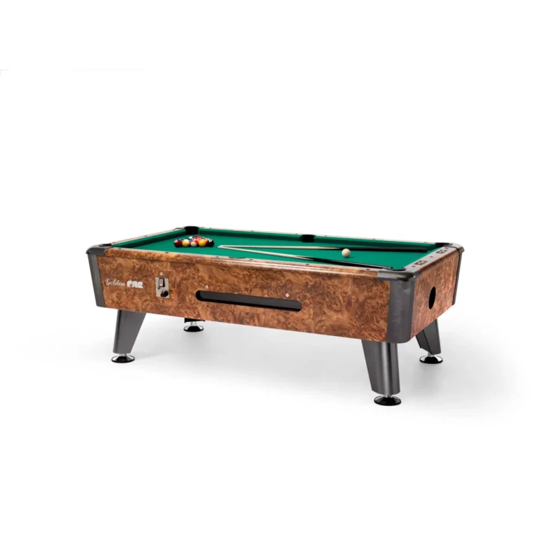 L’elegante biliardo (pool americano) professionale modello GOLDEN, progettato e costruito per un utilizzo intensivo e specifico per sale da biliardo e locali da intrattenimento, poiché dotato di gettoniera.