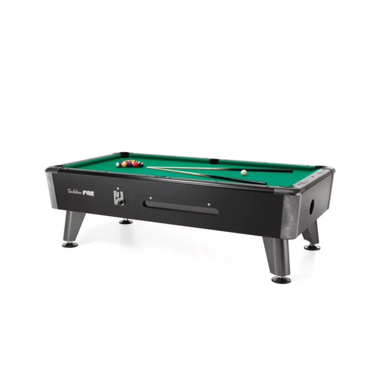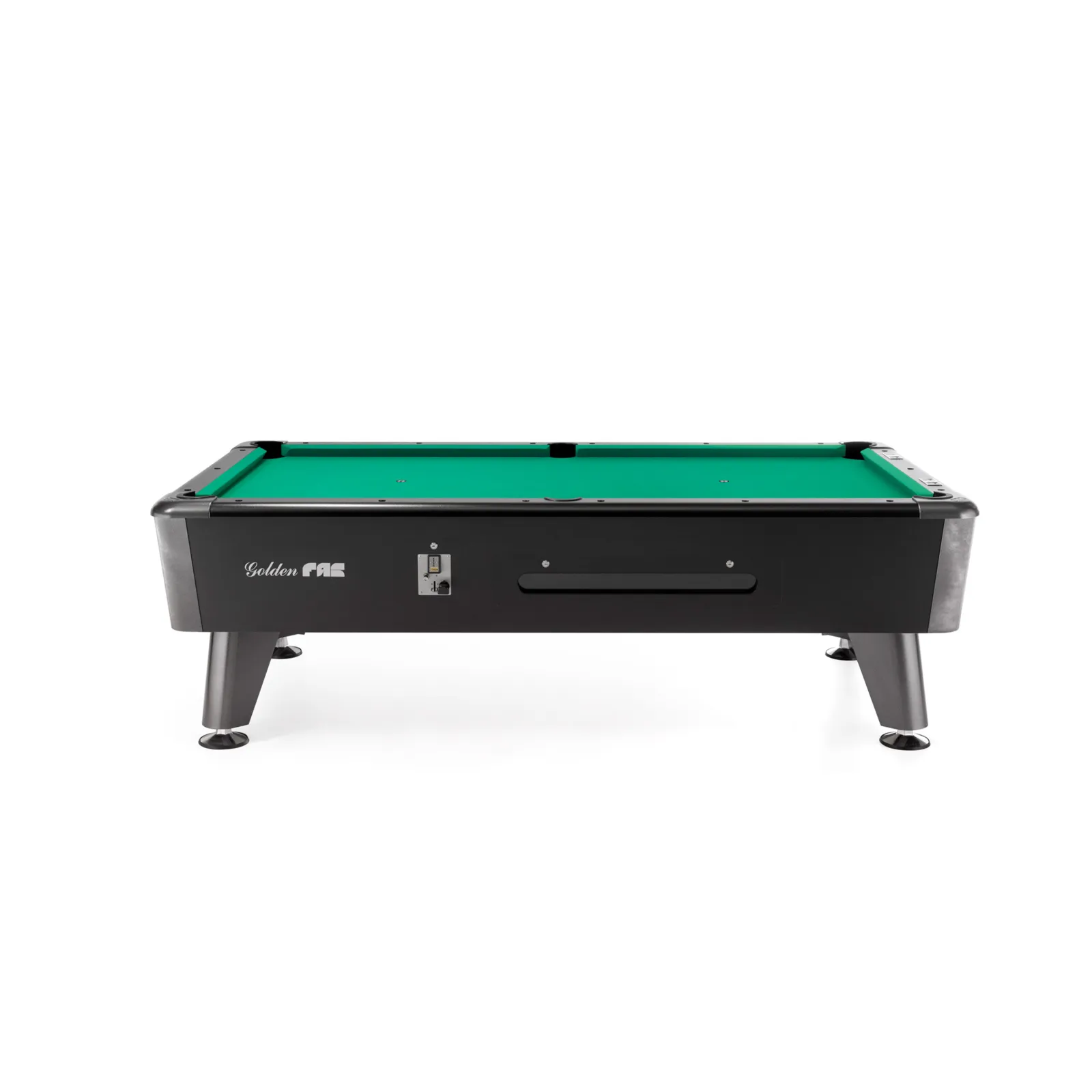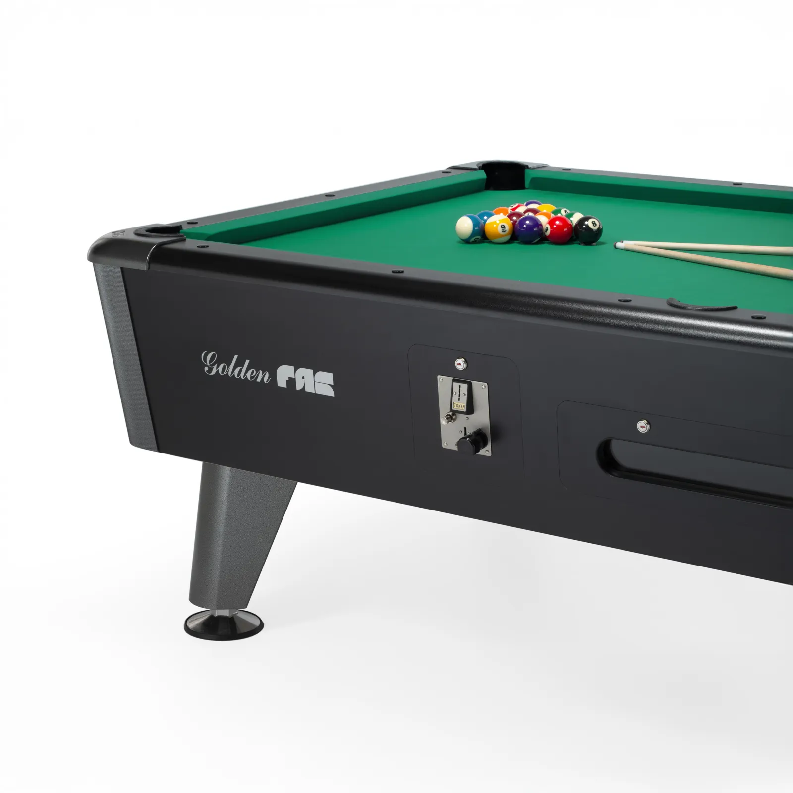 L’elegante biliardo (pool americano) professionale modello GOLDEN, progettato e costruito per un utilizzo intensivo e specifico per sale da biliardo e locali da intrattenimento, poiché dotato di gettoniera.