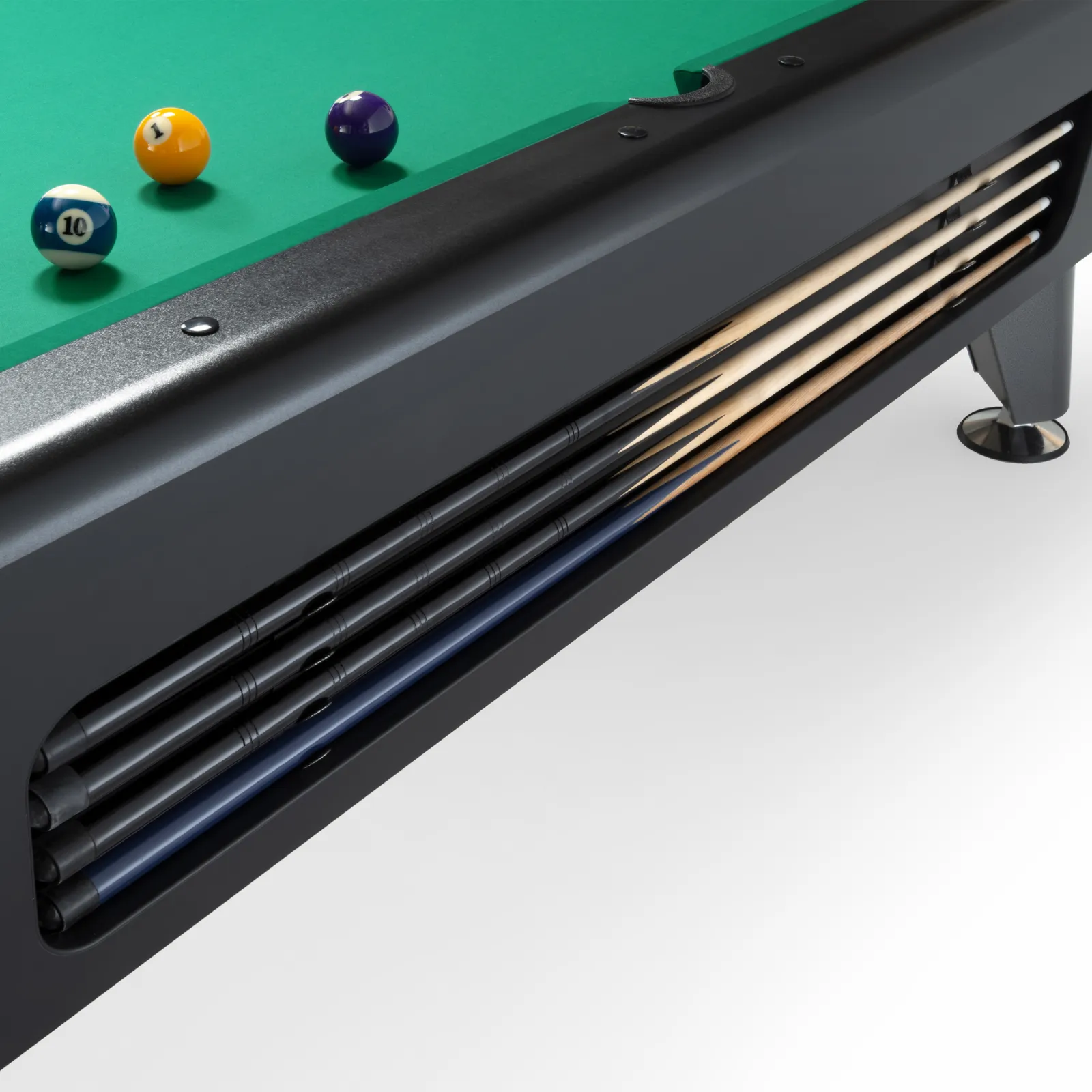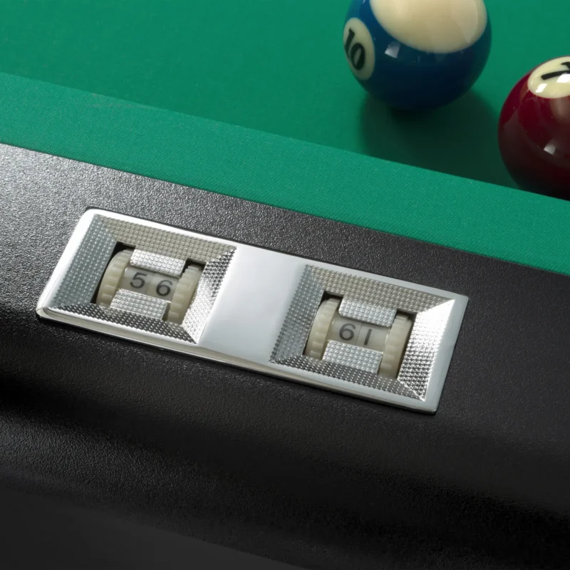 Il campo gioco, disponibile in tre misure (7, 8 e 9 piedi), è composto da un’ardesia professionale in sezione unica, che garantisce la massima stabilità e qualità; questo fa sì che il modello Golden sia il più richiesto per tutti i locali pubblici da divertimento.