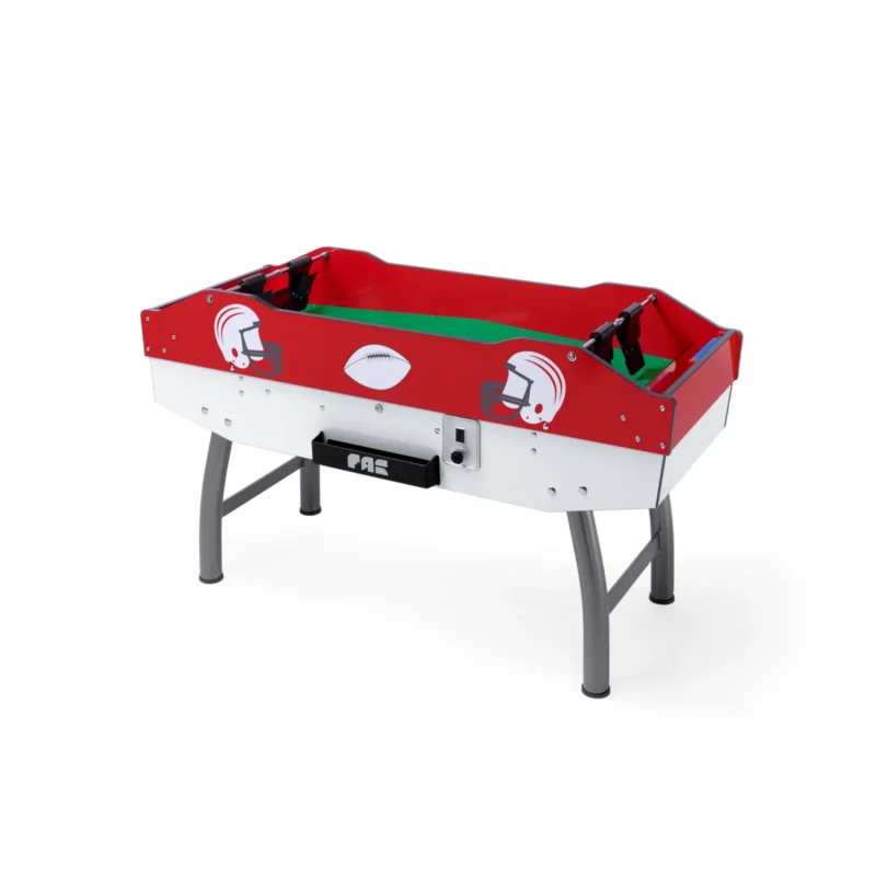 Gioco divertente e robustissimo ideale per sfide appassionate di giocatori di ogni età. Lo scopo del gioco è quello di mettere la pallina nella porta avversaria utilizzando due comode manopole che scorrono su un’asta in acciaio, parallelamente rispetto al campo gioco. Dotato di gettoniera, è ideale per comunità, oratori, sale gioco.